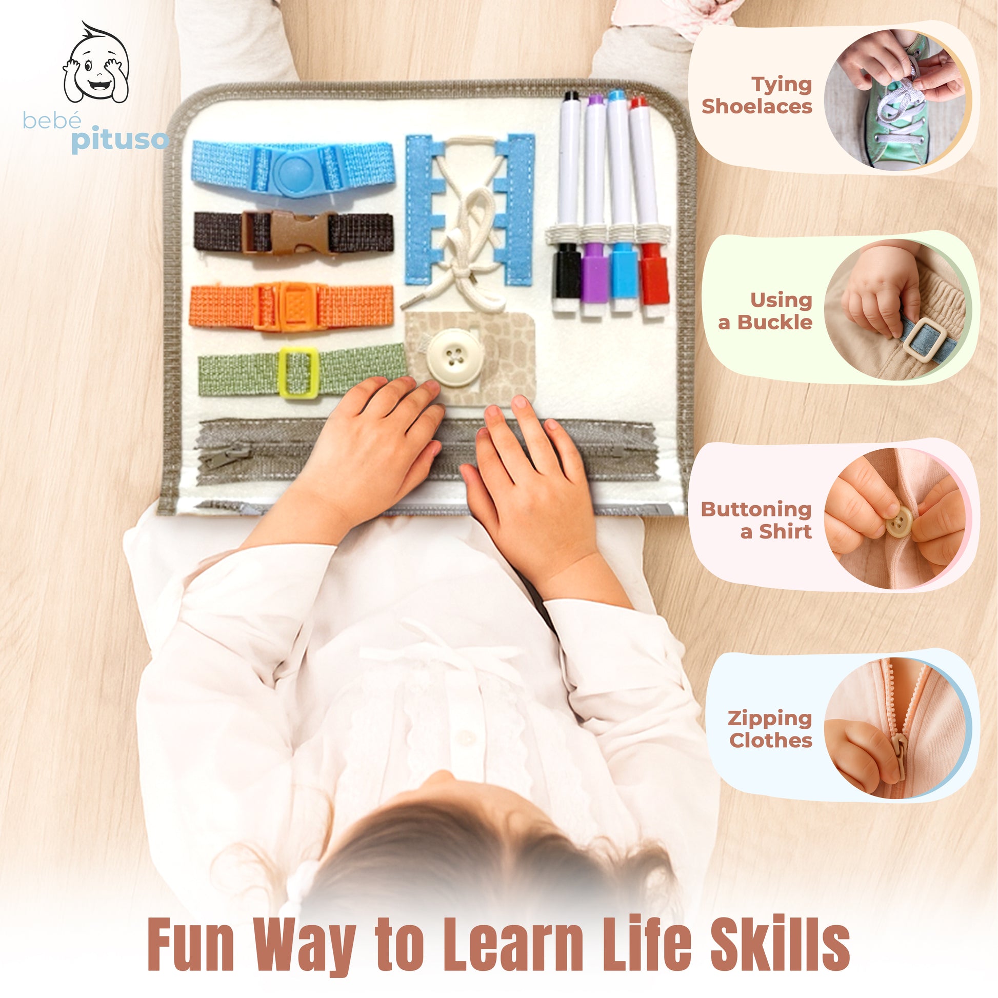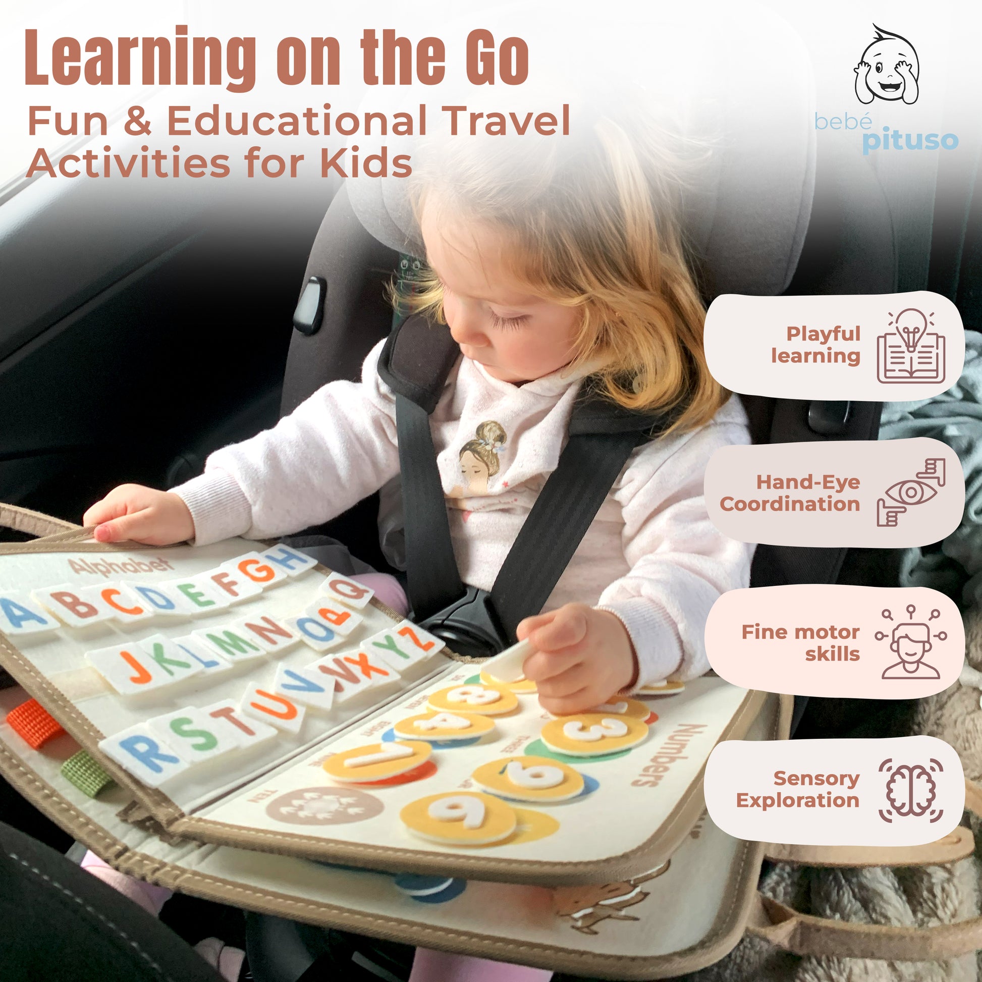 ✨ [Más práctica que los cubos de actividades y otros tableros de actividades] Nuestra busy board de fieltro es blanda, segura y ultraligera. A diferencia de los cubos de actividades o tableros pesados, no ocupa espacio, no molesta al tumbarse y se puede usar en casa, en viajes o en el cochecito. Estimula igual, pesa menos y se adapta a cualquier momento del día.